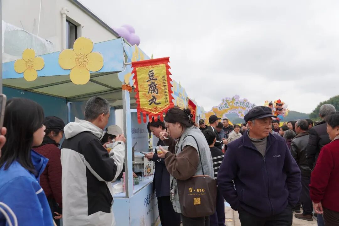 ▲非遗·供销集市 走进集市现场,精心设置的20余个非遗·供销展位,招募了农特产品经销商、农民专业合作社、非遗企业入驻。浦城大米、丹桂红茶、黄毕洋酸菜等特色产品,包装精致的非遗好物与新鲜地道的农特产品相得益彰,吸引了游客驻足围观、咨询选购。 “我们带来的都是自家合作社种植加工的产品,浦城大米颗粒饱满、香气浓郁。”“酸枣糕吃了健脾开胃,都是原生态的好东西。”“浦城豆腐丸距今已有两千多年历史,是福建浦城传统名吃,2012年被列入市级非物质文化遗产。”展位的负责人一边让游客免费品尝一边介绍产品。浦城豆腐丸市级非遗传承人陈秀妹笑着告诉记者:“这次借助非遗·供销集市这一平台,让更多人了解浦城非遗和浦城的优质产品,效果非常好。”