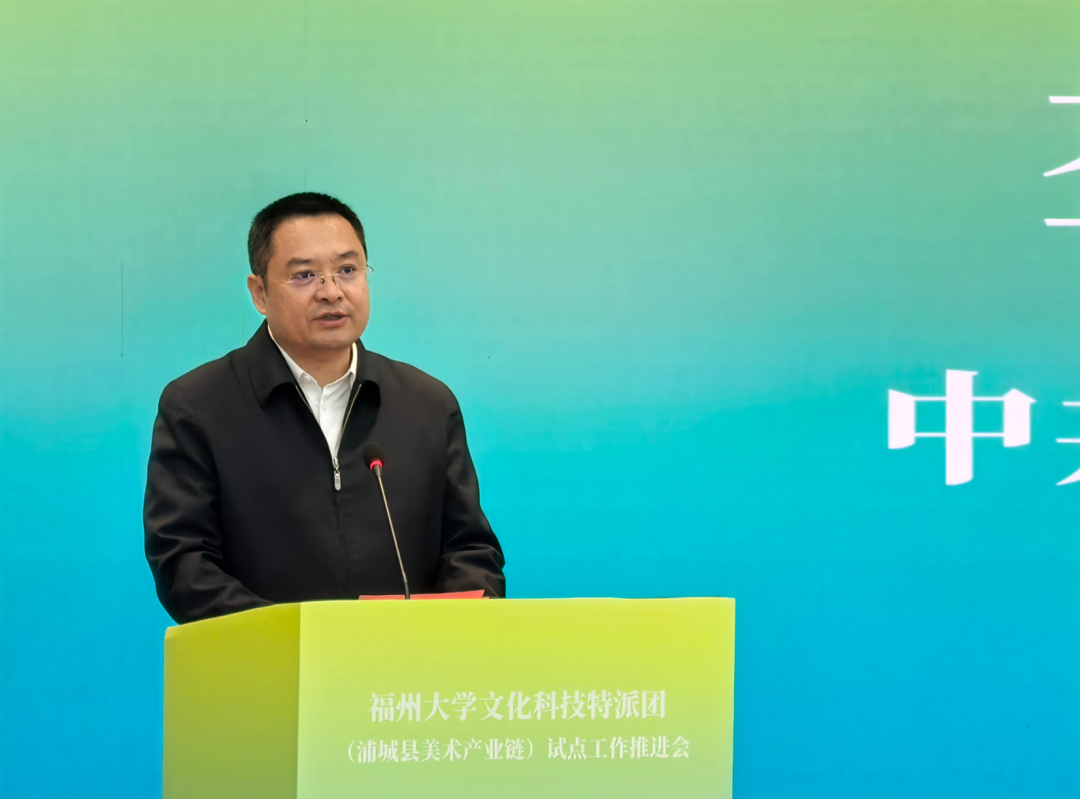 王心晨在讲话中指出,福州大学文化科技特派团融合浦城千年文化和福州大学新质生产力,积极探索文化科技与乡村发展的融合路径,结合当地优势资源,围绕浦城美术产业链,积极谋划文创文旅融合产品,打造好非遗文化品牌,以美术产业为链赋能乡村文化建设。希望通过特派团工作的推进,让浦城文化资源转化为发展优势,让福大的科技力量赋能艺术创新,为福建省文化强省建设和社会主义新农村建设注入持久动力。