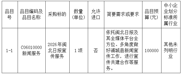 浦城县融媒体中心2026年闽北日报宣传服务采购项目单一来源公告