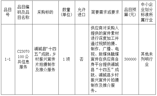 浦城县“十四五”成就、乡村振兴宣传片拍摄制作及推介服务采购项目单一来源公告