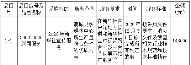 浦城县融媒体中心2026年新华社宣传服务采购项目结果公告