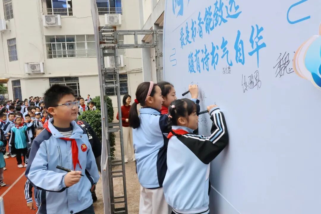 ▲宣誓 “我是实小书香少年,我宣誓:每天阅读,坚持到底;让阅读成为习惯,让书香伴我成长!”在领誓人的带领下,全体学生举起右拳,目光坚定,齐声宣誓。稚嫩而坚定的声音在校园上空久久回荡,传递着对阅读的热爱与承诺。 宣誓完毕,校领导郑重宣布:“‘阅见花开’阅读节,正式启动!”全场掌声雷动。随后,校领导、教师代表、家长代表和学生代表依次在主题签名墙上郑重签名,一笔一画写下对阅读的庄严承诺。 “阅见花开”,不止是看见书中的繁花似锦,更是在阅读中遇见更好的自己。此次启动仪式不仅展示了浦城县实验小学师生良好的精神风貌,也架起了家校共育的桥梁。接下来,学校还将围绕阅读节开展系列读书活动,让书香伴随每一个孩子向阳生长,静待花开。(李张琪 周文倩 罗诗毅) |