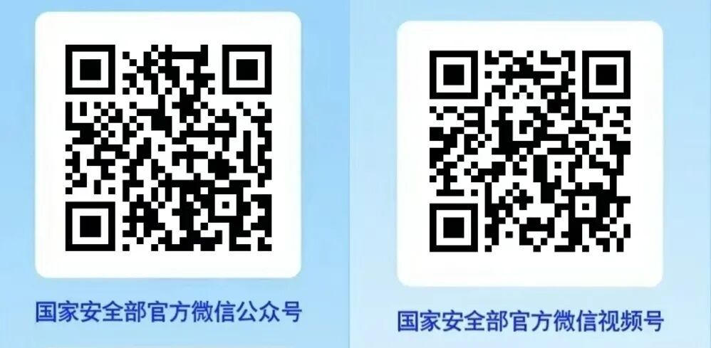 关注“国家安全部”官方微信公众号和“国家安全部”官方微信视频号,获取并学习国家安全知识。