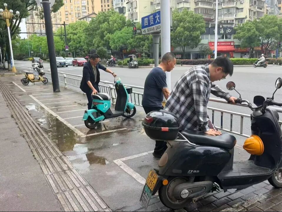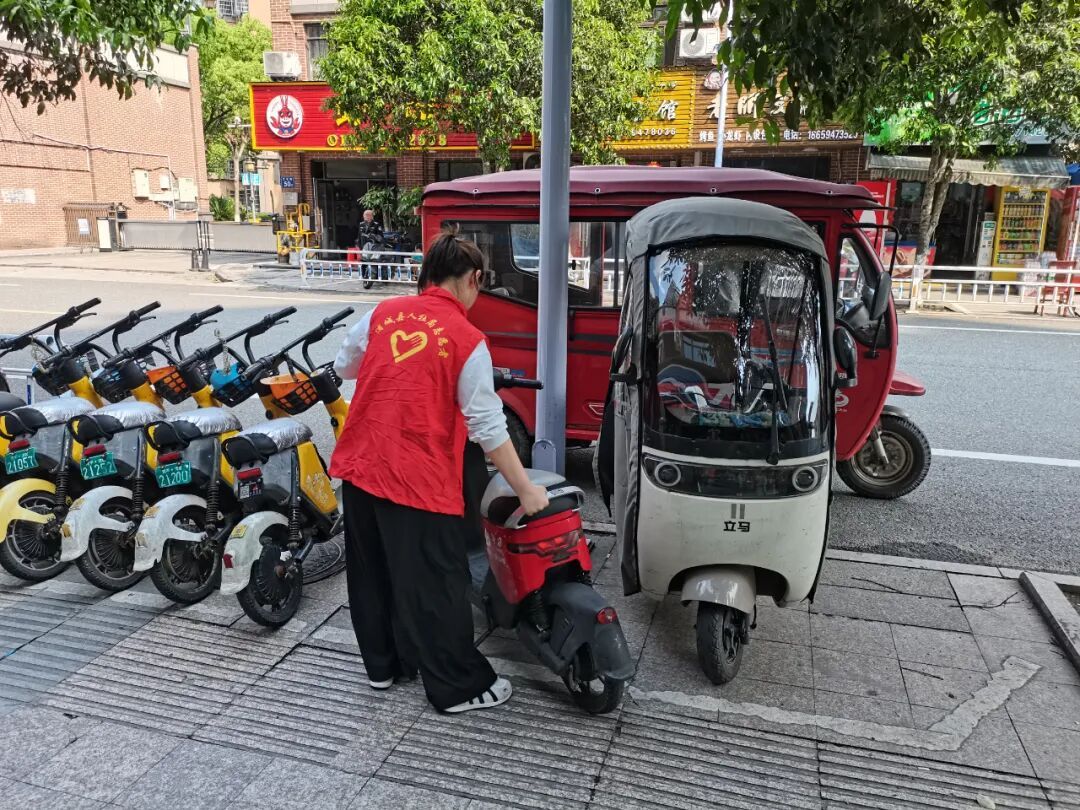 整治过程中,大家采取“劝导+规范”相结合的方式。对辖区内无人看管、乱停乱放的电动车进行逐一清理、规范摆放,将占用消防通道、盲道、人行横道的电动车挪移至合规停车区域。同时还化身文明劝导员,深入楼栋、沿街商铺,对违规停放电动车的居民进行耐心劝导,引导居民自觉将车辆停放至指定区域,主动规范停车秩序。