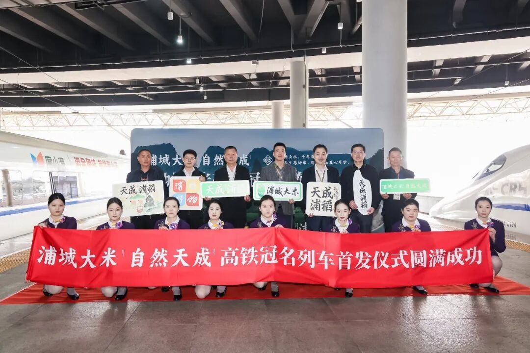 4月15日,浦城大米高铁列车在上海南站首发启航。浦城县人民政府、浦城县乡村振兴发展中心相关领导,福建浦丰乡村发展集团有限公司、福建旭禾米业有限公司、浦城县万鑫家庭农场、福建山农米业有限公司以及华铁传媒集团有限公司相关领导与嘉宾出席首发仪式,共同见证浦城大米从福建出发,奔赴全国更广阔的消费市场。