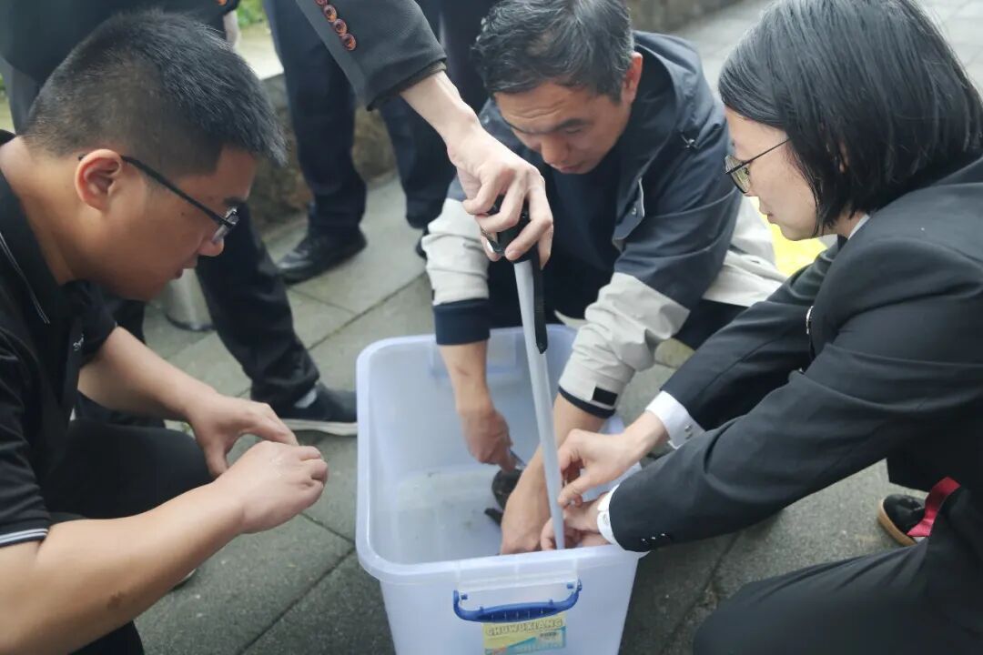 ▲为娃娃鱼“体检” “当时它正蜷缩在角落,我一眼就认出这很可能是珍稀动物。”市民刘女士回忆道,语气里还带着几分惊喜。她没有犹豫,第一时间将情况上报110接警中心。接警后,南浦街道派出所、县农业综合执法大队工作人员迅速赶到现场,从刘女士手中小心翼翼地接过了这位“不速之客”,一条野生娃娃鱼。 娃娃鱼学名大鲵,是国家二级重点保护野生动物,也是我国特有的珍稀物种。其存活时间比恐龙还古老,被誉为“水中活化石”。它对生存环境要求极为苛刻,水质稍有污染便难以存活,因此也被科学家视为水生态环境的“晴雨表”。这也是浦城县继2024年4月后再次记录到野生娃娃鱼的踪迹。
