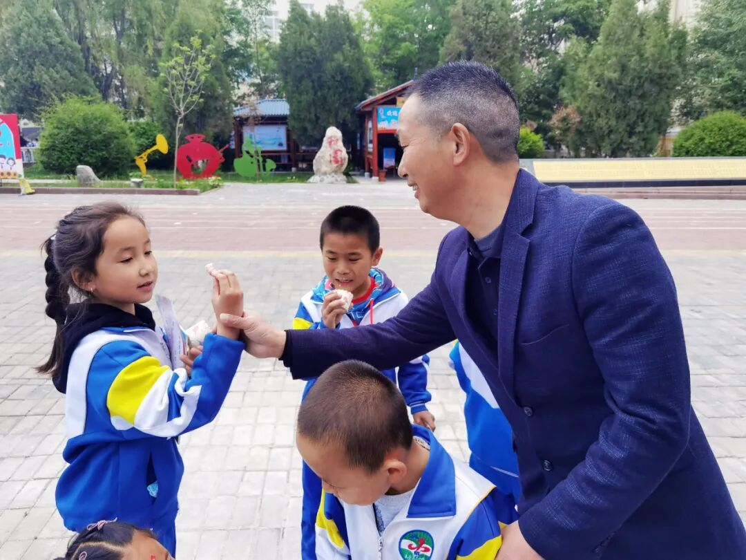 来到新疆,面临气候干燥、饮食习惯、时差等各种不适应,张芳照努力调整自己的状态尽快适应。来到木垒三小报到离期末也只有一个月的时间,学校安排他代请产假张老师的一年级课程,协助一(4)班的班主任参与班级管理。为了尽快与孩子熟悉,他加强与孩子们的沟通交流,下课后与孩子们玩游戏,课间及时了解当地学生情况,几天便与一年级的孩子们融洽相处。在与孩子们相处的这段时间里,他每天总是微笑着面对孩子们,虽然也有时因为他们的淘气、不遵守纪律而生气,也会因为孩子们的一些细微举动而感动。 随着时间的推移,张芳照与孩子们的距离逐渐拉近,孩子们见到他会主动问好,课间活动的时候会热情的邀请他一起玩耍,还会跟他分享一些同学间的小秘密,会偷偷地将爱吃的零食塞到他的口袋。每次见到他的时候,孩子们都会围在他的身边说:“张老师,这节课你上吗?”“老师,你什么时候上课?”“老师,上体育课的时候下来跟我们玩吧。”从此找他主动谈心、玩游戏、交流的孩子越来越多。面对不同年级的孩子他始终保持着热情,因为他深知援疆承载的不仅是一份阅历,一份情怀,一份信任,更是一份使命。 青蓝赓续,“传帮带”结硕果